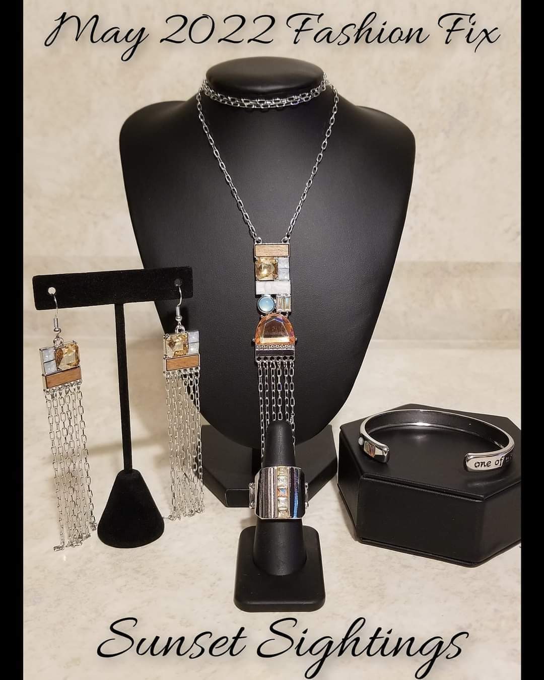 Includes one of each accessory featured in the Sunset Sightings Trend Blend in May's Fashion Fix: